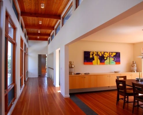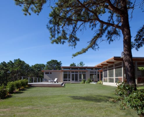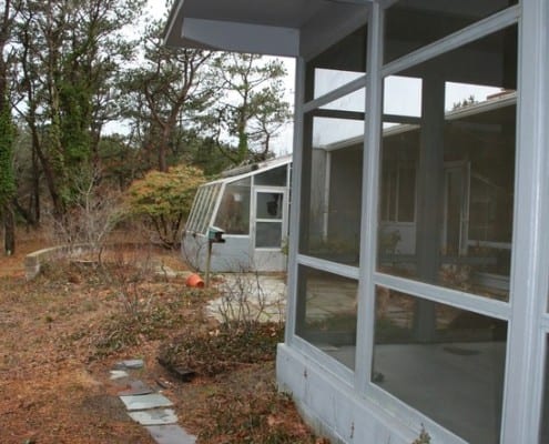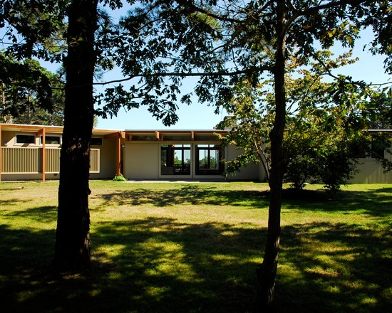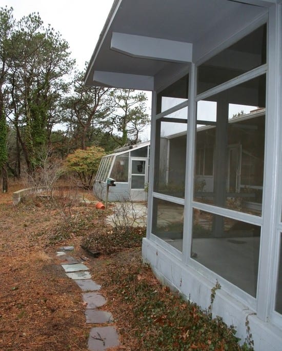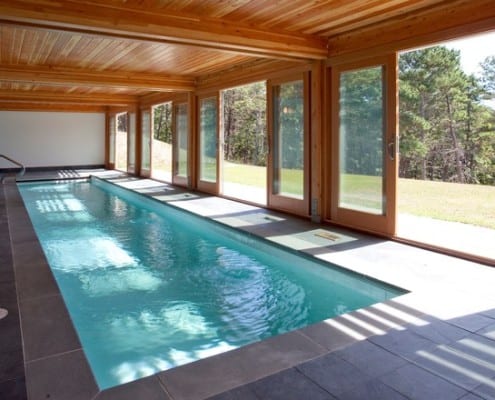 This is Mid-Century Modern Renovation and addition included an indoor lap pool. This summer home was originally built in 1852.