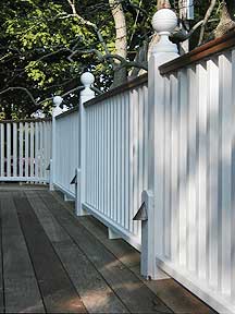 This project called for a banistered porch wrapping around the front and side of a circa 1850 guest house in the East End gallery district in Provincetown. The owners wanted to enhance the privacy of the porches, while maintaining a welcoming external means of entry for their guest rooms, and to extend the social space into the front and side gardens, all in keeping with the setting and the original Greek Revival style of the house.
