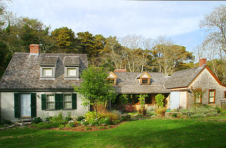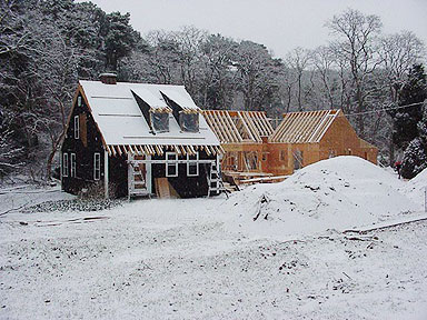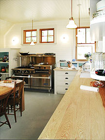A small half-cape farmhouse, built in the 1790’s, was updated to serve the current owner’s more contemporary needs. This project brought the challenge of making the extensive additions appear to be old, to fit the existing frame structure. To accomplish this, the existing structure was restored and old materials were used to finish the new areas. The design called for detailed cabinet work throughout, and custom pantry and kitchen cabinets. Commercial appliances were installed for clients who enjoy cooking and entertaining. The master bath was fitted with custom concrete soaking tub and sinks. The old and the new are integrated in a rhythmic harmony of space and proportion, and the whole comfortably inhabits the site. The veranda forms an inviting place in between outside and inside. The naturalized gardens, celebrating both light and shade, complement the country setting.