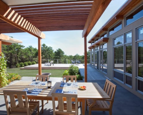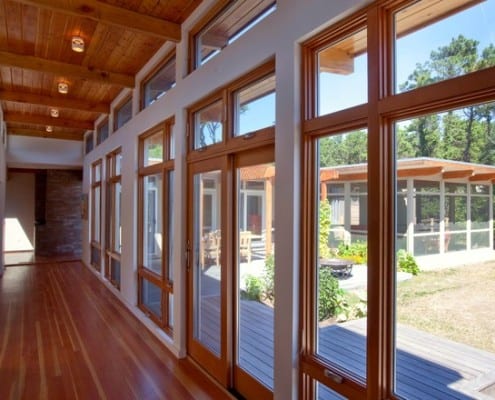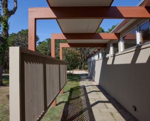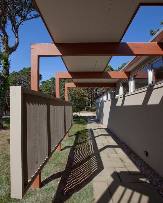 This is Mid-Century Modern Renovation and addition included an indoor lap pool. This summer home was originally built in 1852.