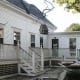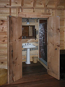 This unique rough-sawn lumber cabin fits naturally into the wooded site in the Cape Cod National Seashore. Details include a built-in desk made of a tree slab and interior plank doors with hand carved knobs. The addition of a screened porch with a four door wide opening that hinges accordion style expands the summer living space into the forest environment.
