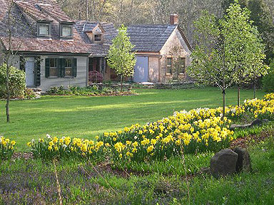 A small half-cape farmhouse, built in the 1790’s, was updated to serve the current owner’s more contemporary needs. This project brought the challenge of making the extensive additions appear to be old, to fit the existing frame structure. To accomplish this, the existing structure was restored and old materials were used to finish the new areas. The design called for detailed cabinet work throughout, and custom pantry and kitchen cabinets. Commercial appliances were installed for clients who enjoy cooking and entertaining. The master bath was fitted with custom concrete soaking tub and sinks. The old and the new are integrated in a rhythmic harmony of space and proportion, and the whole comfortably inhabits the site. The veranda forms an inviting place in between outside and inside. The naturalized gardens, celebrating both light and shade, complement the country setting.